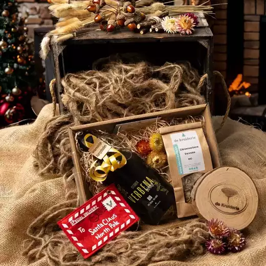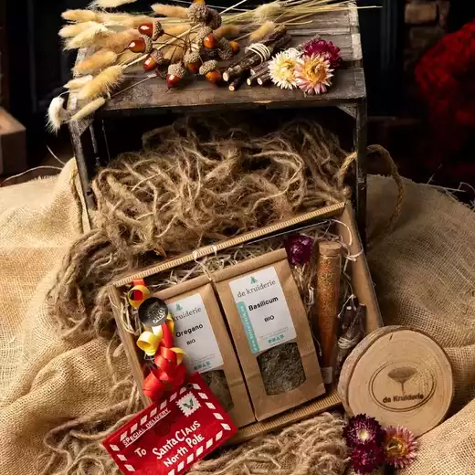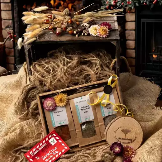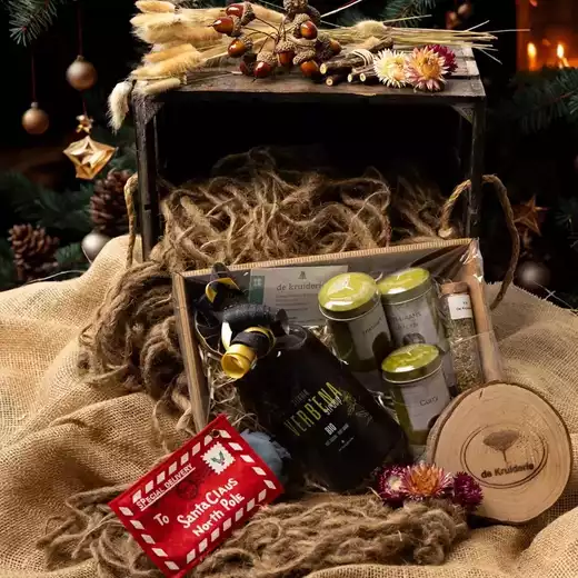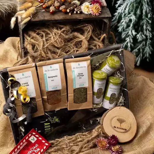 Onze geschenkpakketten zijn enkel te koop in de winkel van De Kruiderie, maar laat ons weten wat je wilt en we zetten je pakket graag klaar voor afhaling.